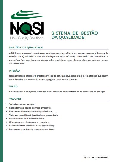 A NQSI é uma empresa certificada pela ABNT NBR ISO 9001